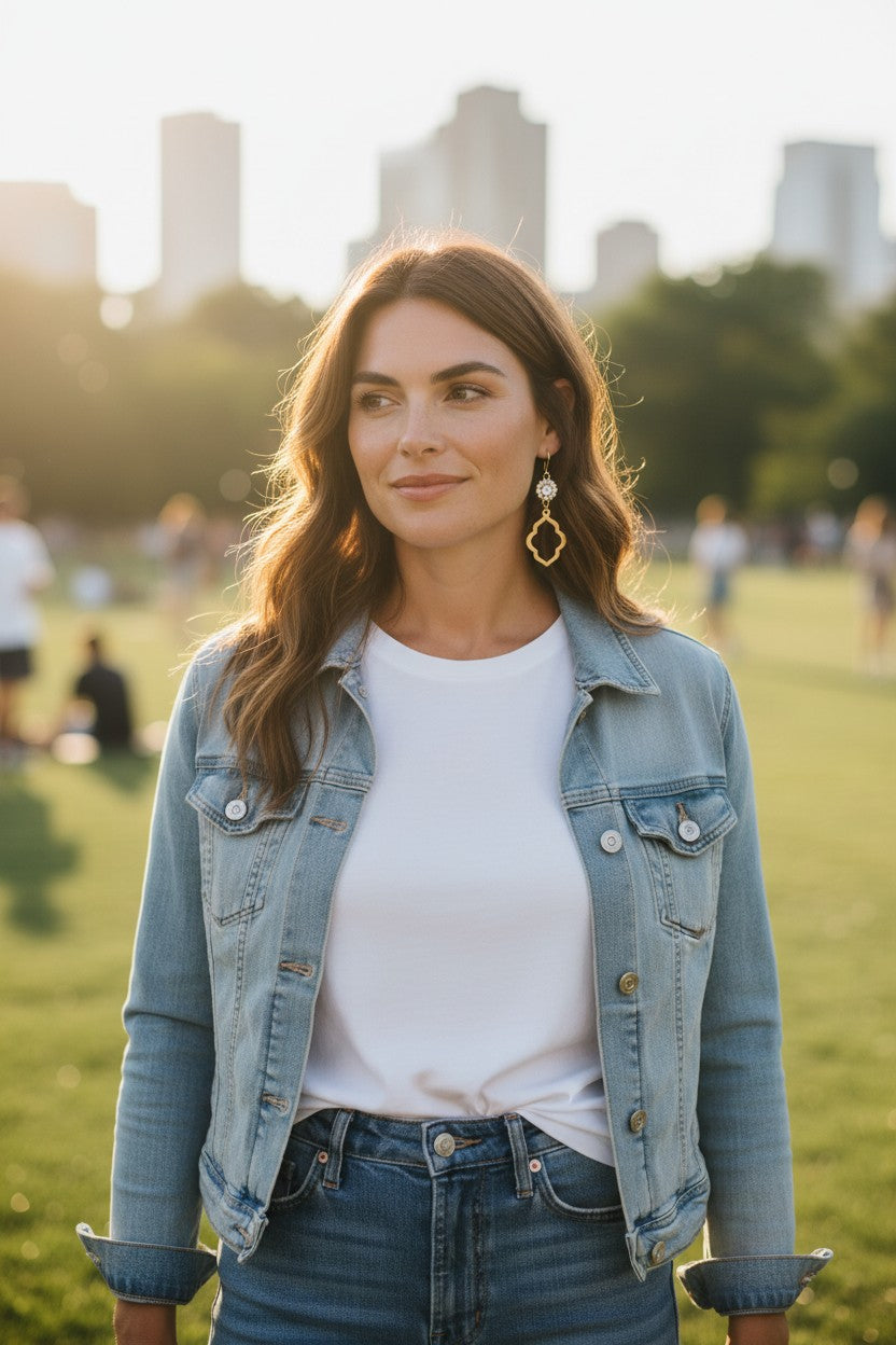 Rhinestone & Brushed Gold Pendant Earrings - E19-4771