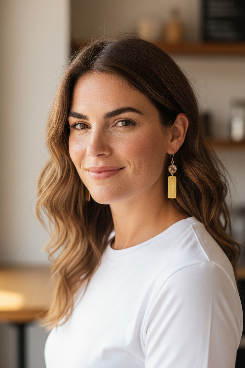 Rhinestone & Gold Bar Pendant Earrings - E19-4887