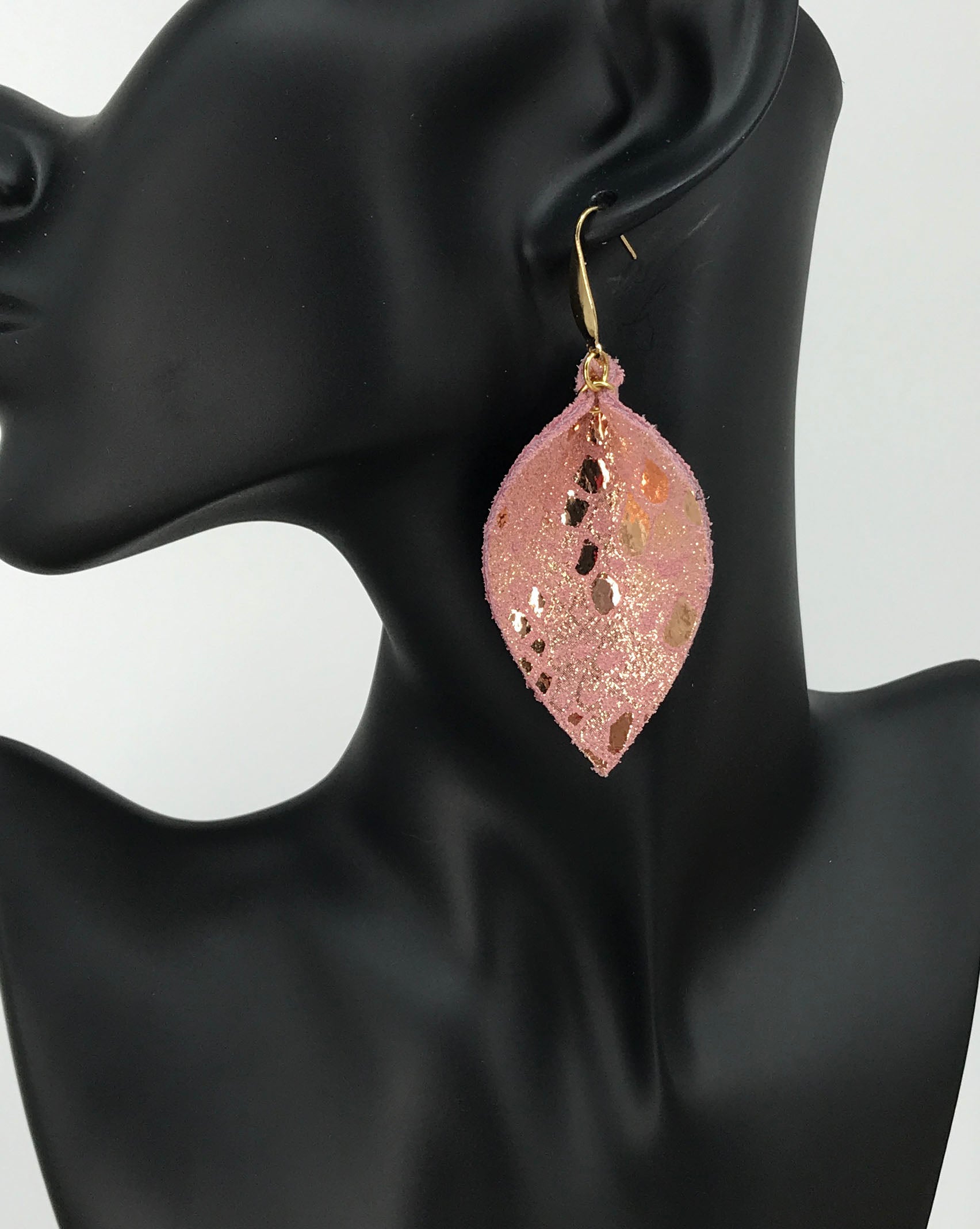Mystic Rose Gold Python on Pink Leather with Gold Tone Stainless Steel Findings and Ear Wires.