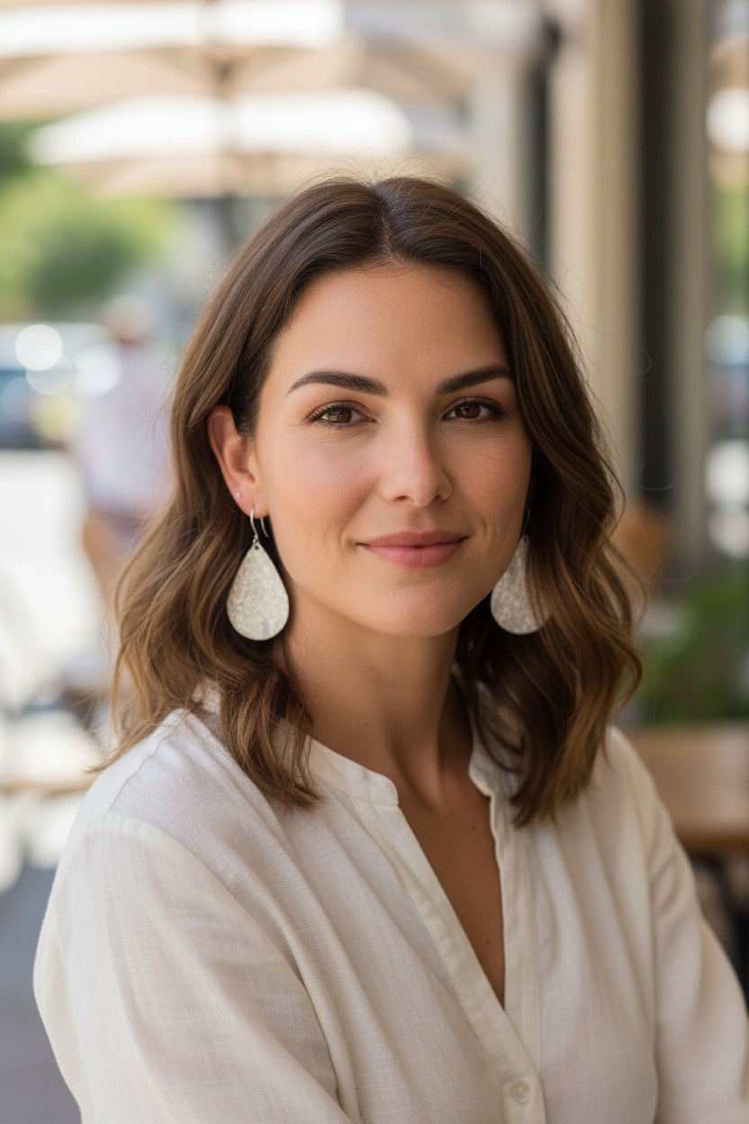 Silver Hair On Leather Earrings with Stainless Steel Findings and Ear Wires.