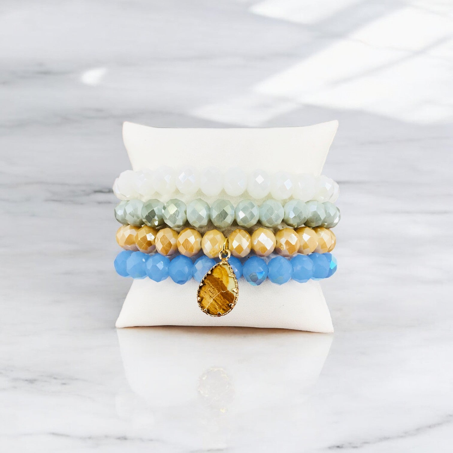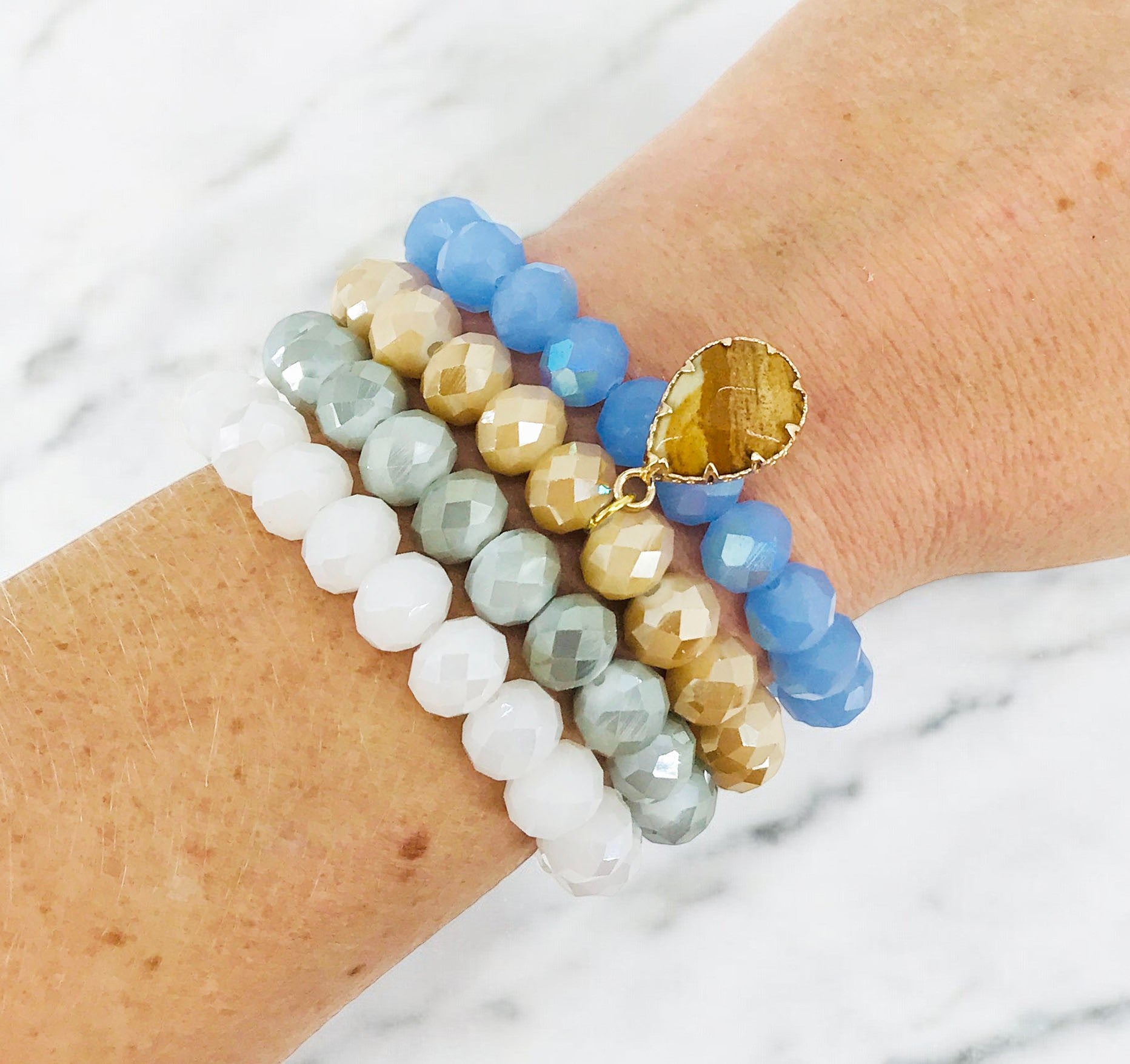 4 Individual Stackable Stretchy Bracelets Locally Designed and Handmade.