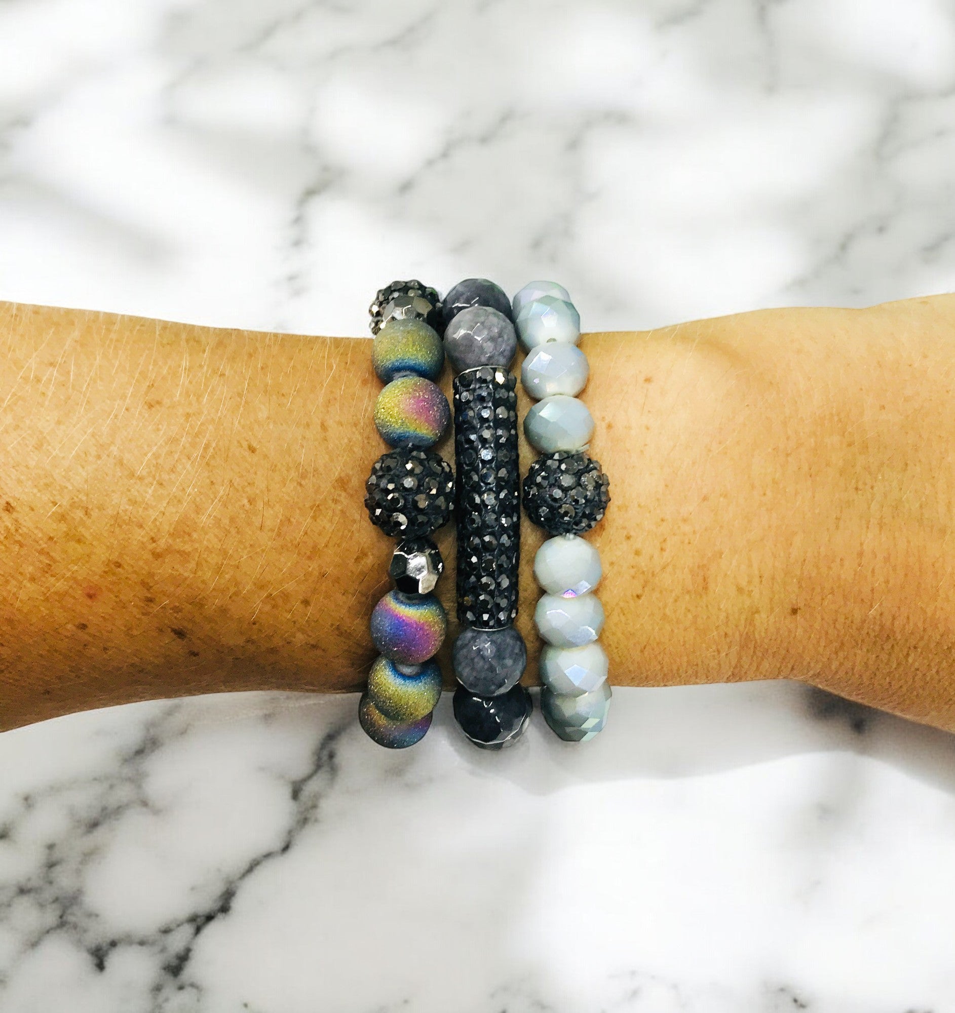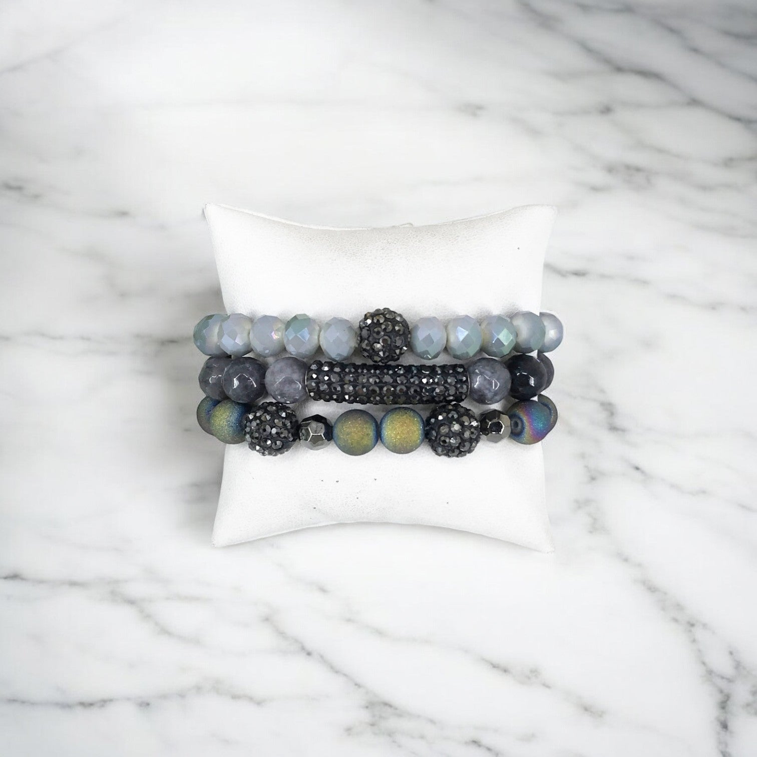 Stackable Bracelet Set of 3 Individual Glass Bead Stretchy Bracelets.