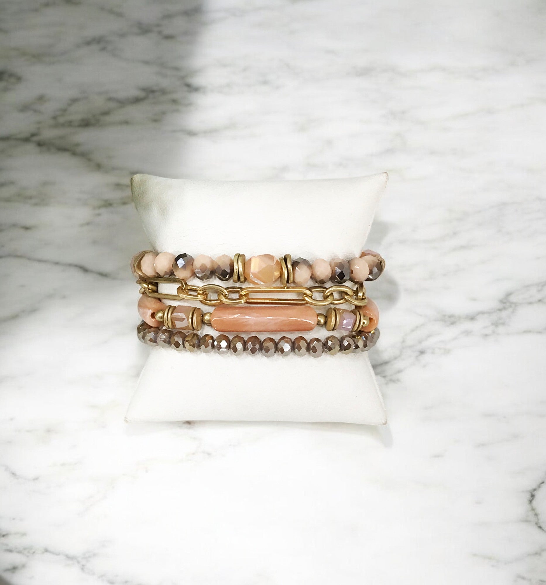 4-Piece Assorted Bamboo Tube Chain Beaded Stackable Bracelet Set.
