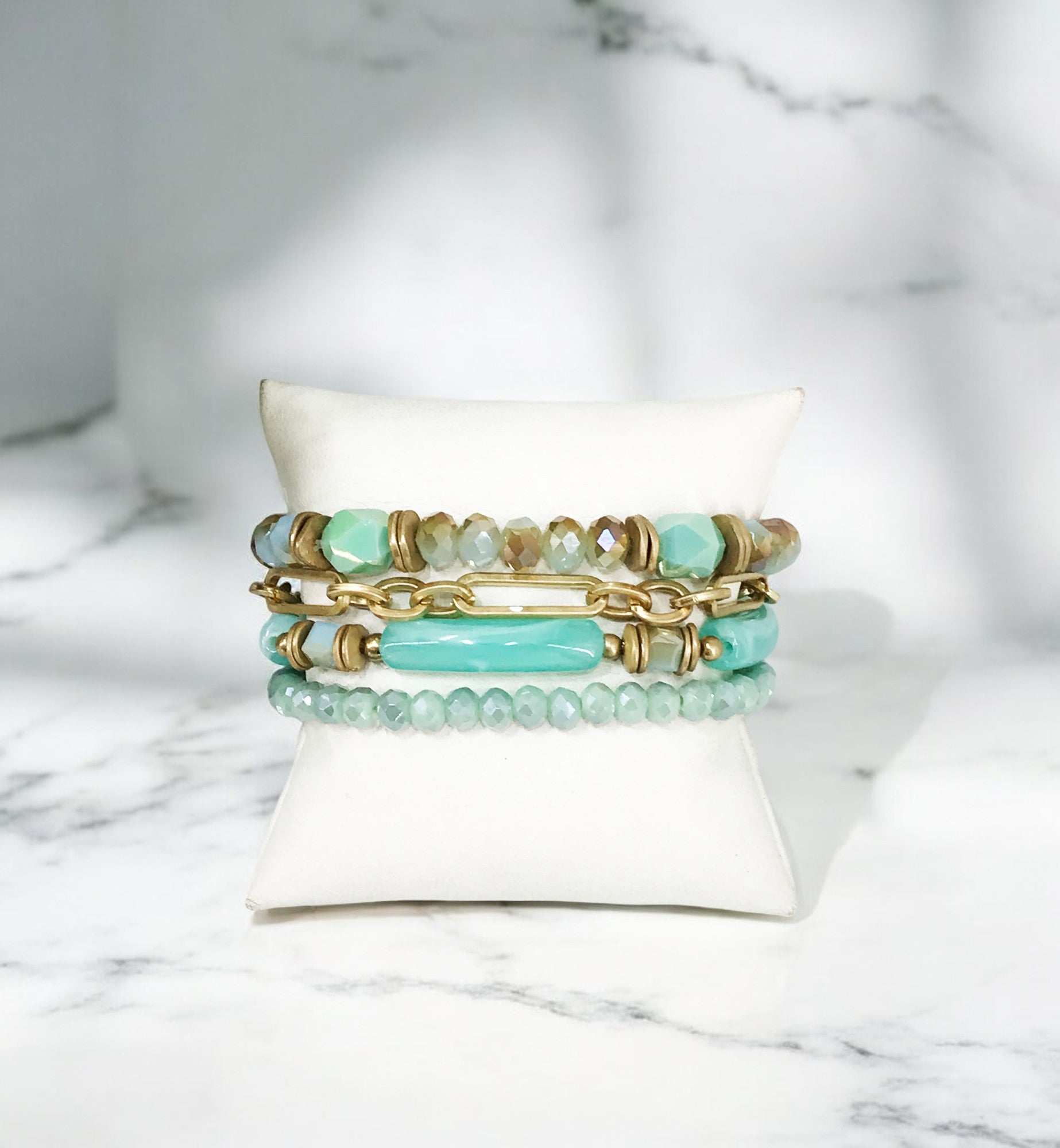 4-Piece Assorted Bamboo Tube Chain Beaded Stackable Bracelet Set.