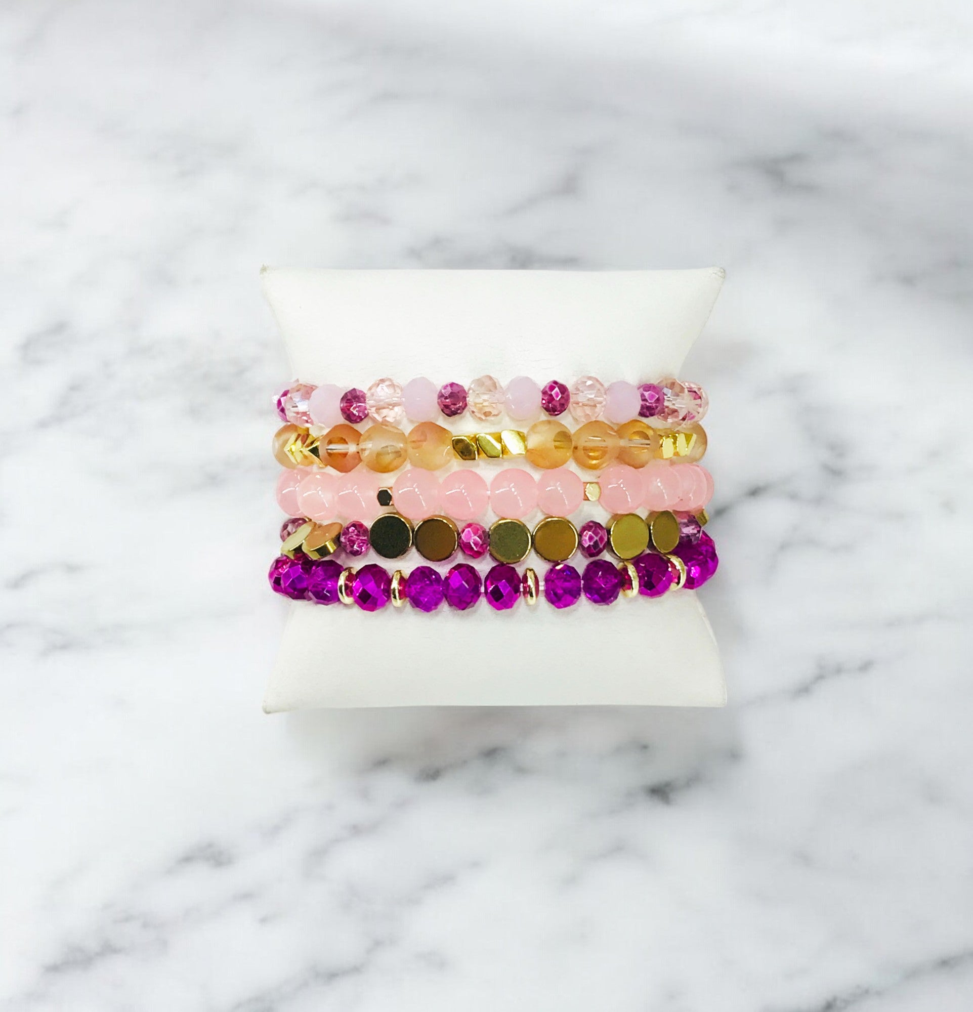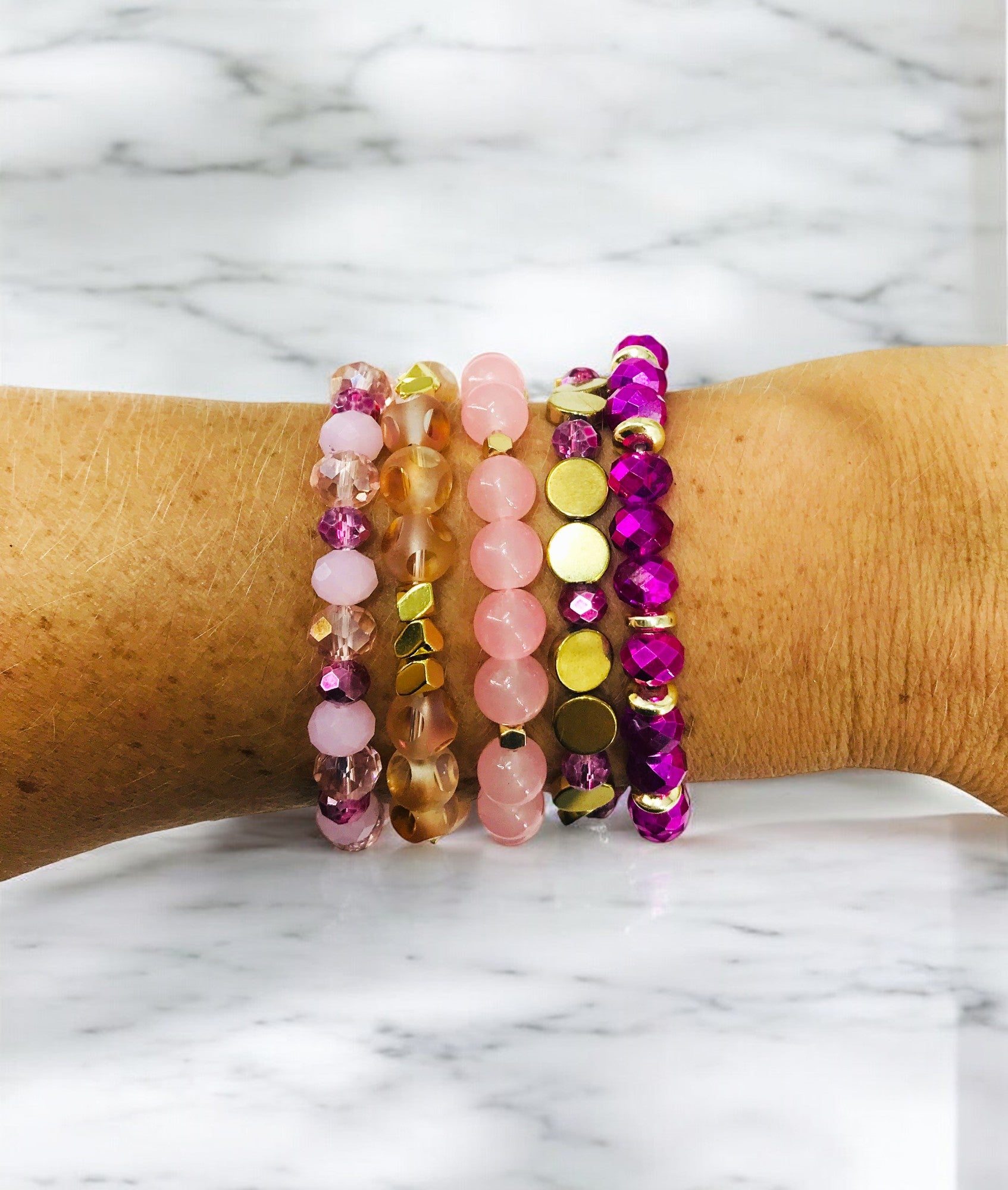 Stackable Bracelet Set Consisting of 5 Separate Glass Bead Stretchy Bracelets.