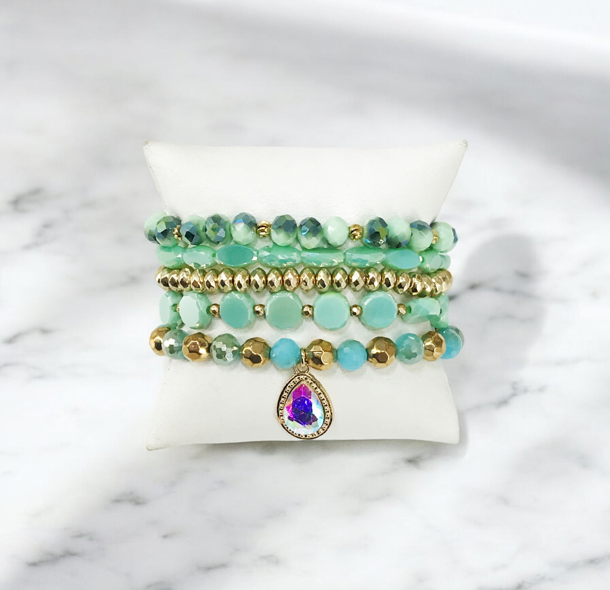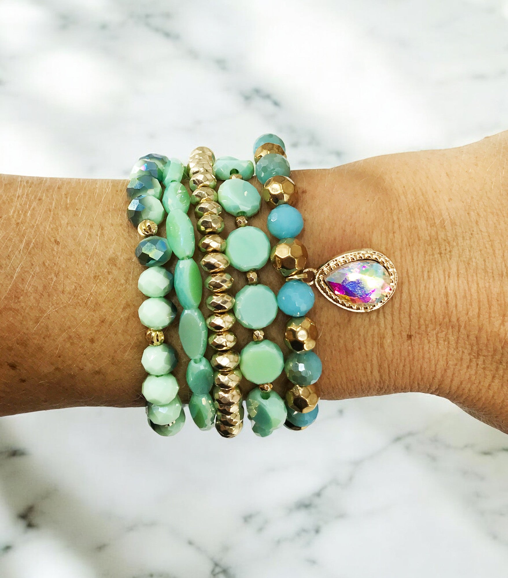 Stackable Bracelet Set Consisting of 5 Separate Glass Bead Stretchy Bracelets.