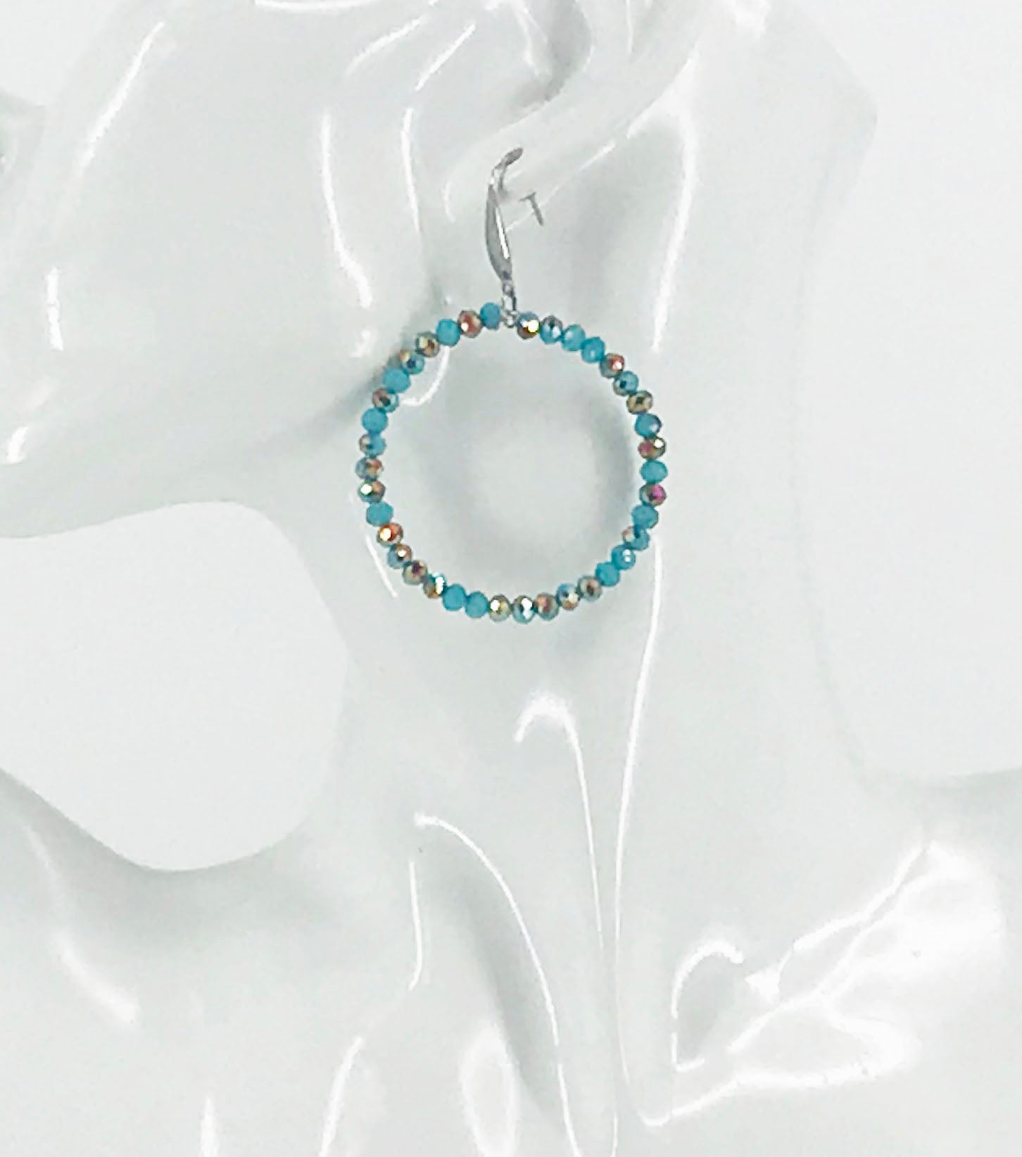 Turquoise Glass Bead Hoop Earrings - E19-2403