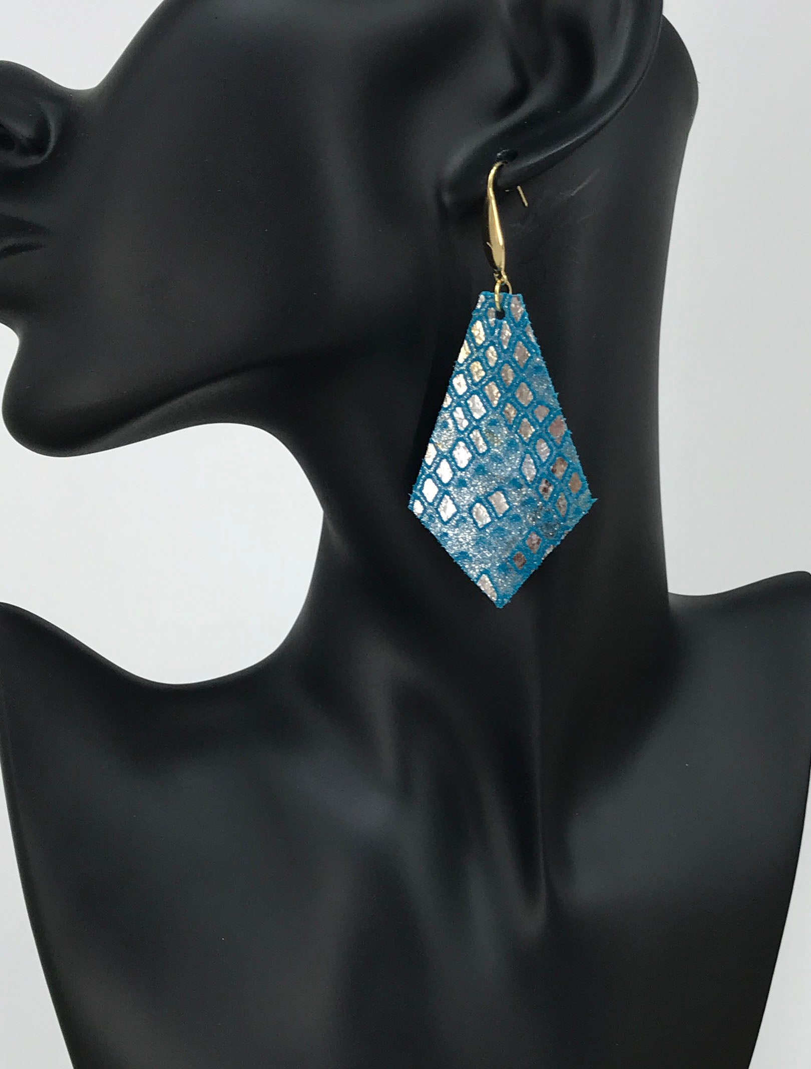 Mystic Iridescent Tri Color on Turquoise Python Snake Leather Earrings with Gold Tone Stainless Steel Findings and Ear Wires.