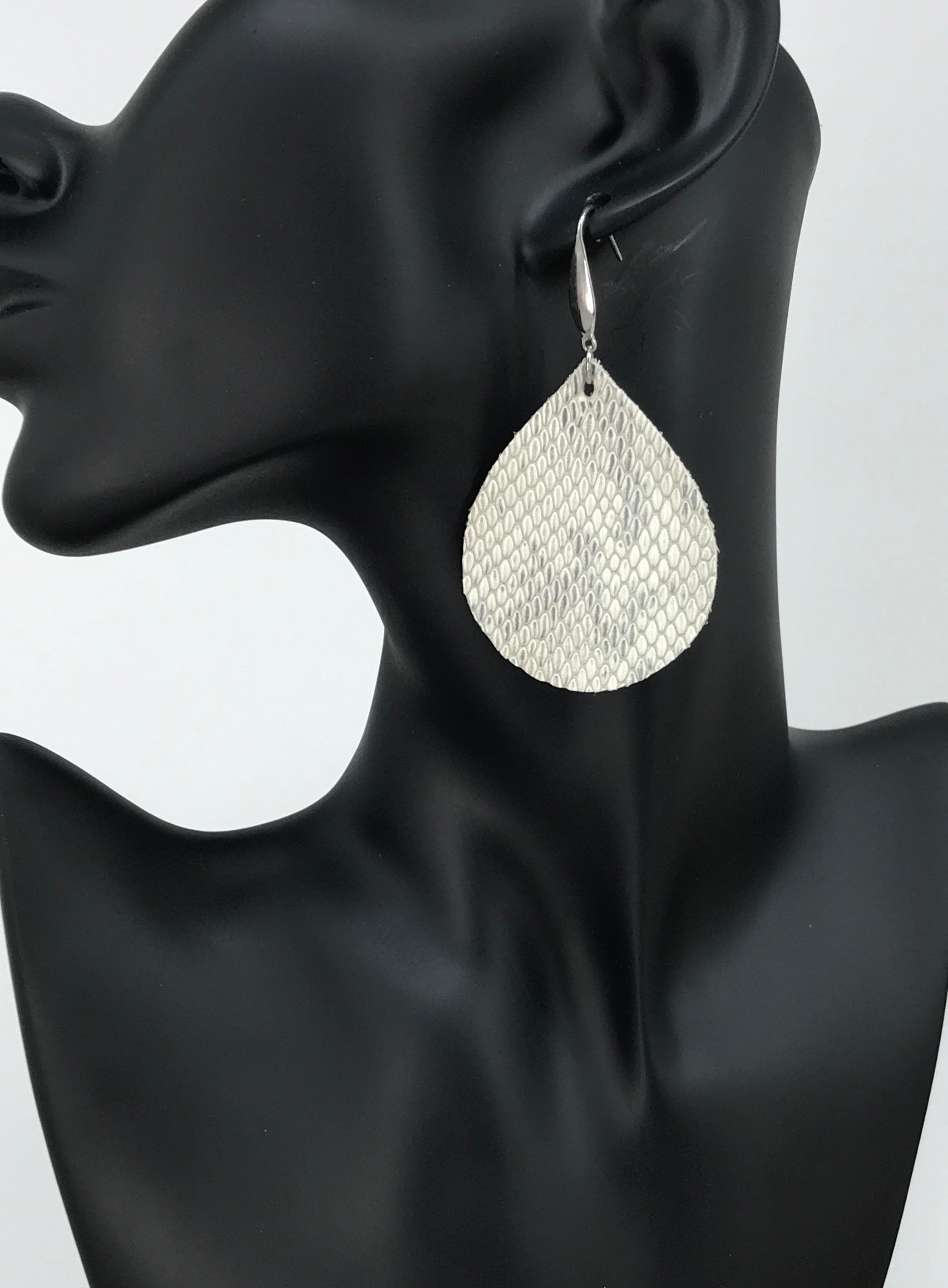 Urban Textured Snake Leather Earrings with Stainless Steel Findings and Ear Wires.