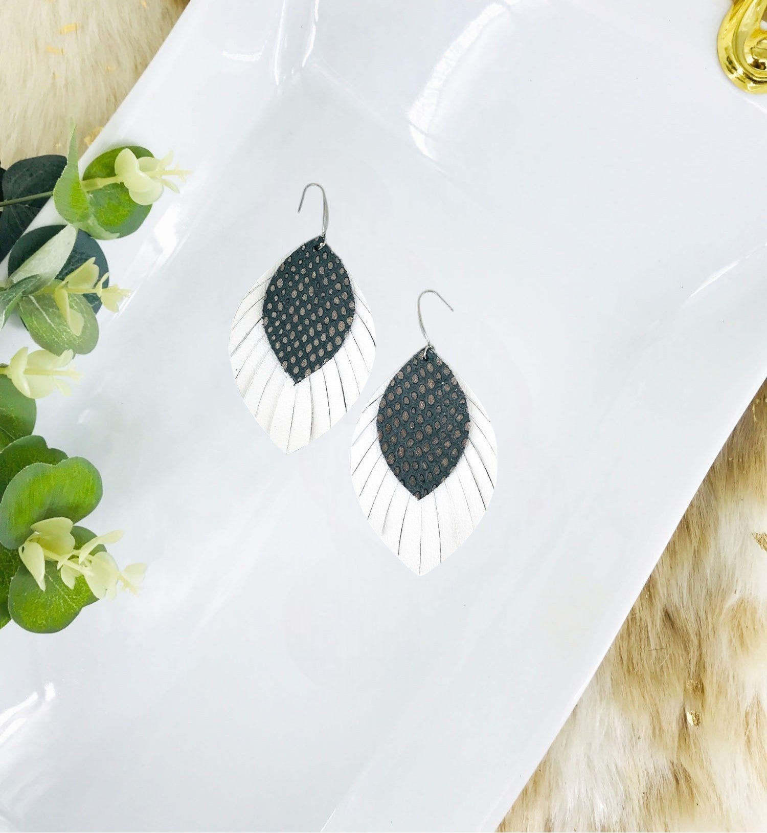 White Duchess Collection Leather and Snake Skin Leather Earrings with Stainless Steel Findings and Ear Wires.