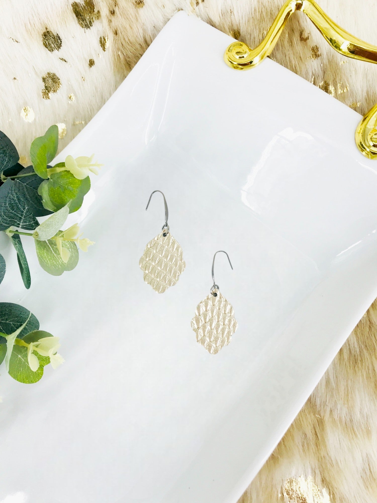 Platinum Amazon Cobra Leather Earrings with Silver Tone Stainless Steel Findings and Ear Wires.