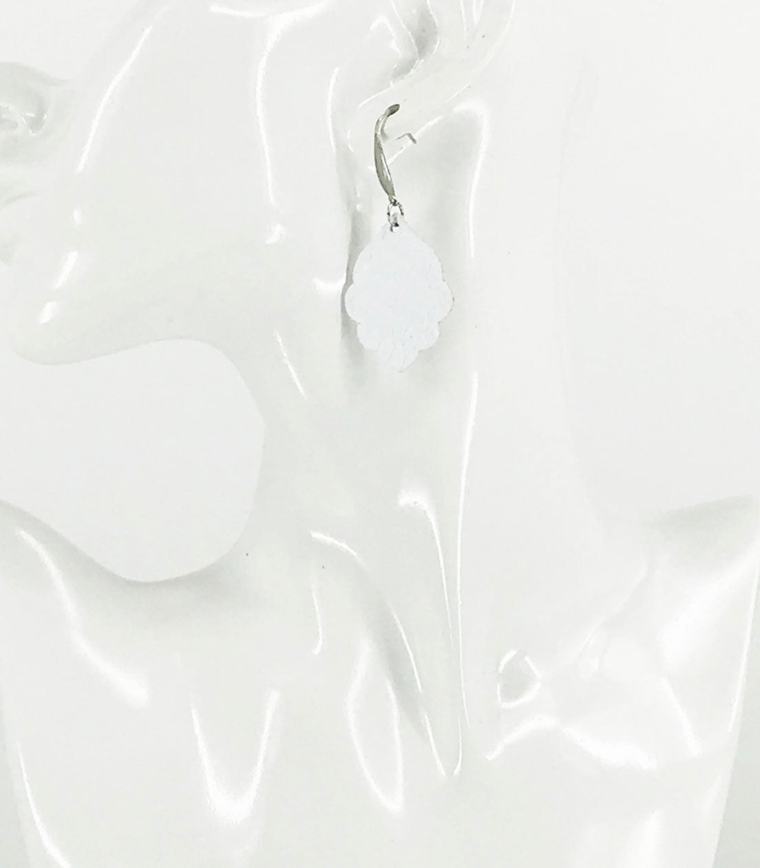Matte White Amazon Cobra Leather Earrings with Silver Tone Stainless Steel Findings and Ear Wires.