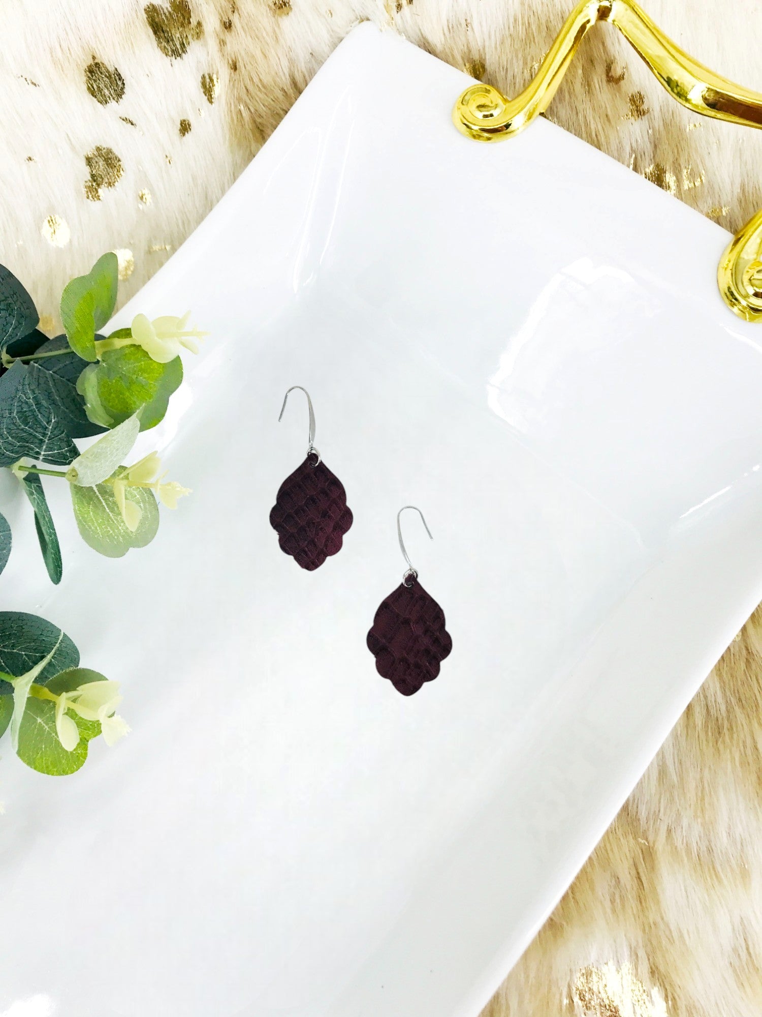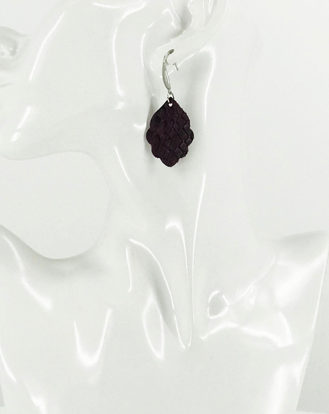Genuine Maroon Alligator Leather Earrings with Silver Tone Stainless Steel Findings and Ear Wires.